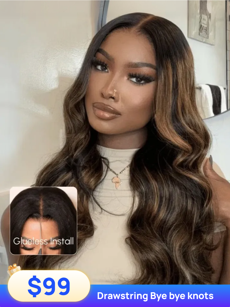 Nadula Flash Sale Highlight Balayage Body Wave Invisible Lace Put On And Go Human Hair Wigs with Drawstring