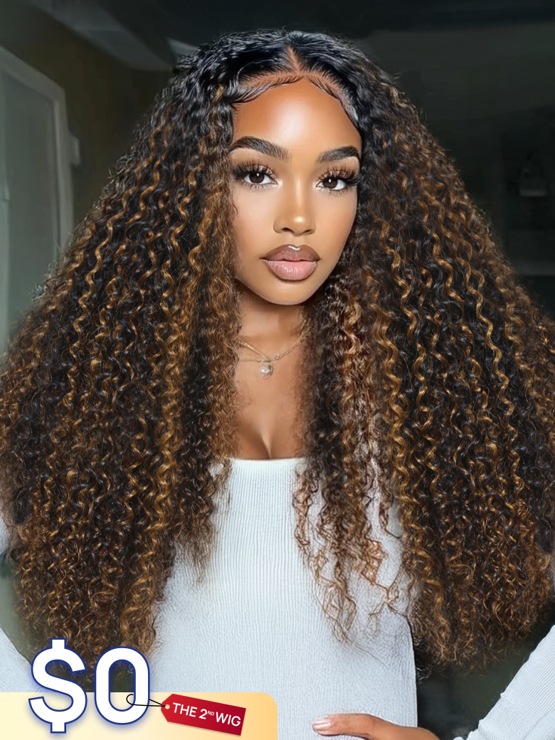$0 Get Second Wig | Nadula Flash Sale V-part V Part Curly Balayage Highlight 100% Human Hair Wigs