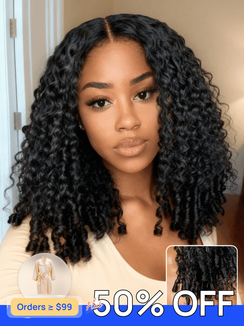 Nadula Flash Sale V Part And 7x5 Lace Closure Burmese Curly Wig With Finger Coil Ends Put On and Go Human Hair Wigs