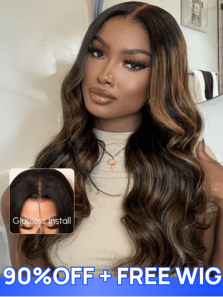 Nadula Flash Sale Highlight Balayage Body Wave Invisible Lace Put On And Go Human Hair Wigs with Drawstring