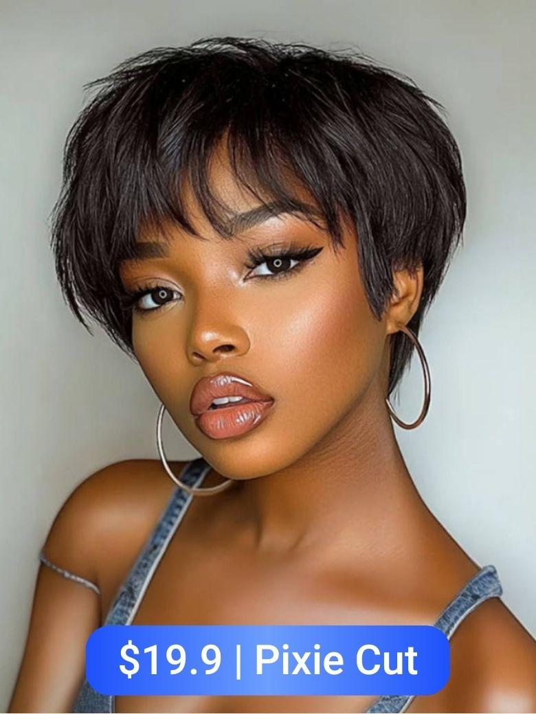 $19.9 Flash Sale | Nadula Short Pixie Cut Wig Natural Black Straight Hair Beginner Friendly Glueless Wig Classic Cap