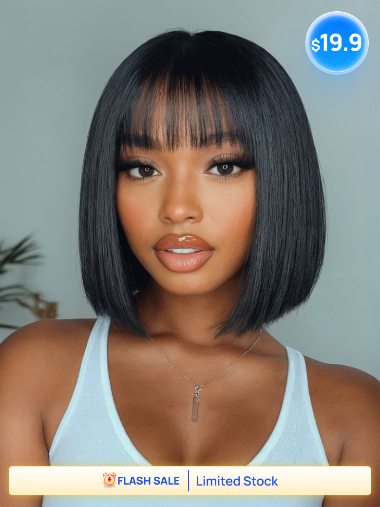 $19.9 Flash Sale | Nadula Short Bob Wig with Bang Natural Black Straight Hair Beginner Friendly Glueless Wig Classic Cap
