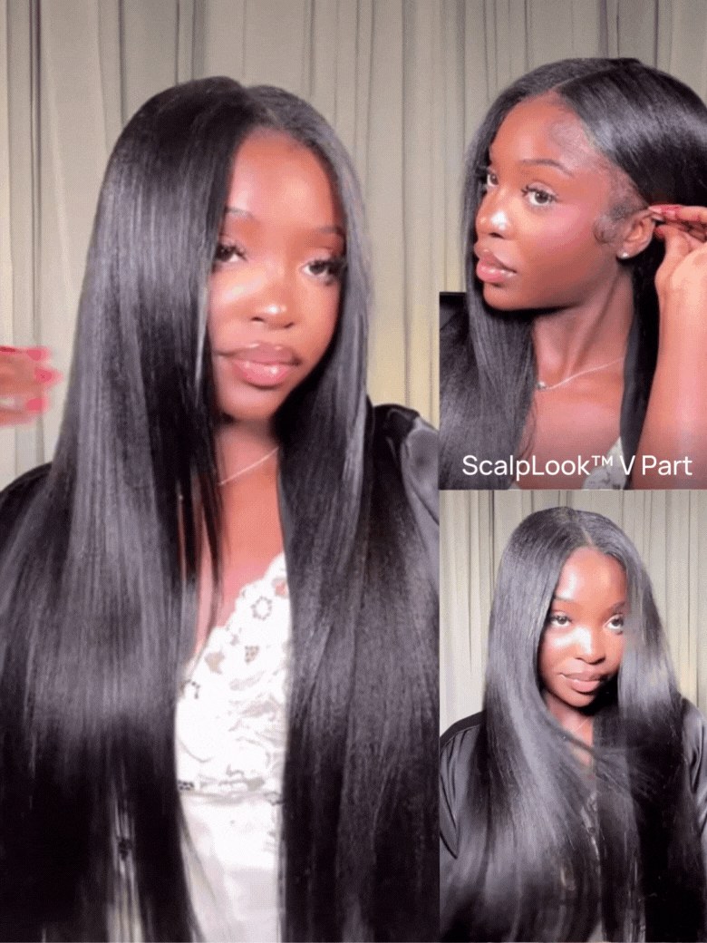 Nadula ScalpLook™ V Part Yaki Straight Glueless Human Hair Wigs Light Kinky Straight Wig