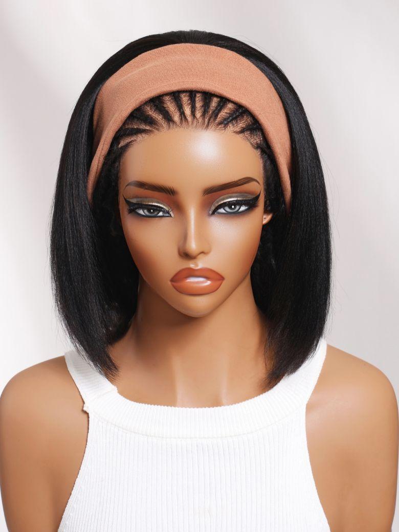 Nadula Yaki Stiaght Bob Wig Flip Over 3/4 Half Wig Blend & Secure Put On and Go Blow Out Human Hair Wigs