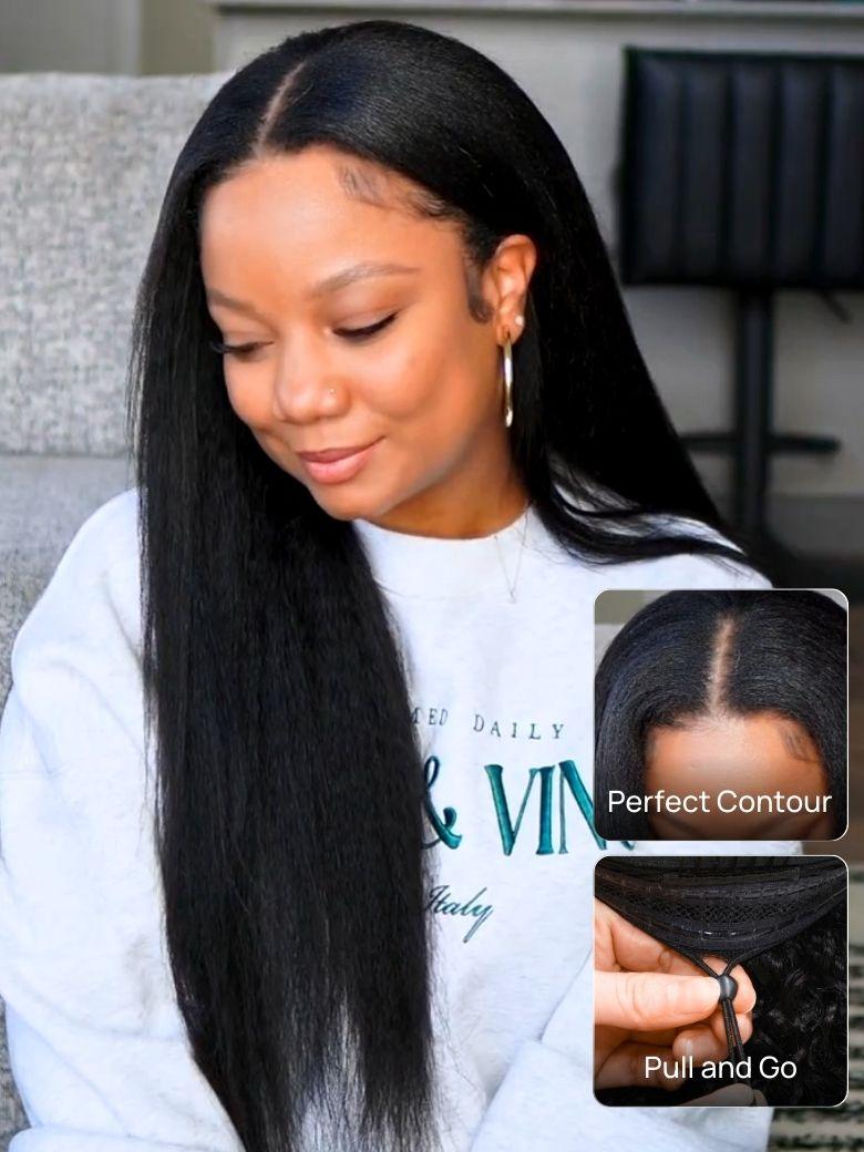 Nadula V-Part Yaki Straight And Kinky Straight Upgrade U Shape Wigs No Lace No Gel Wig